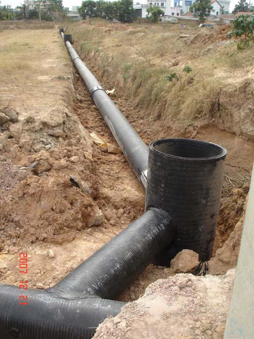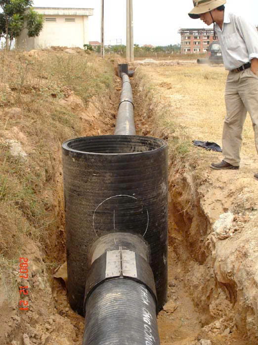 • Đường kính ống gân sóng hdpe 2 lớp : DN = 200 mm, 300mm, 400mm, 500mm,600 mm